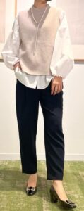 オフィスカジュアルでソフトエレガントに寄せながら女性らしく!がおすすめです。
